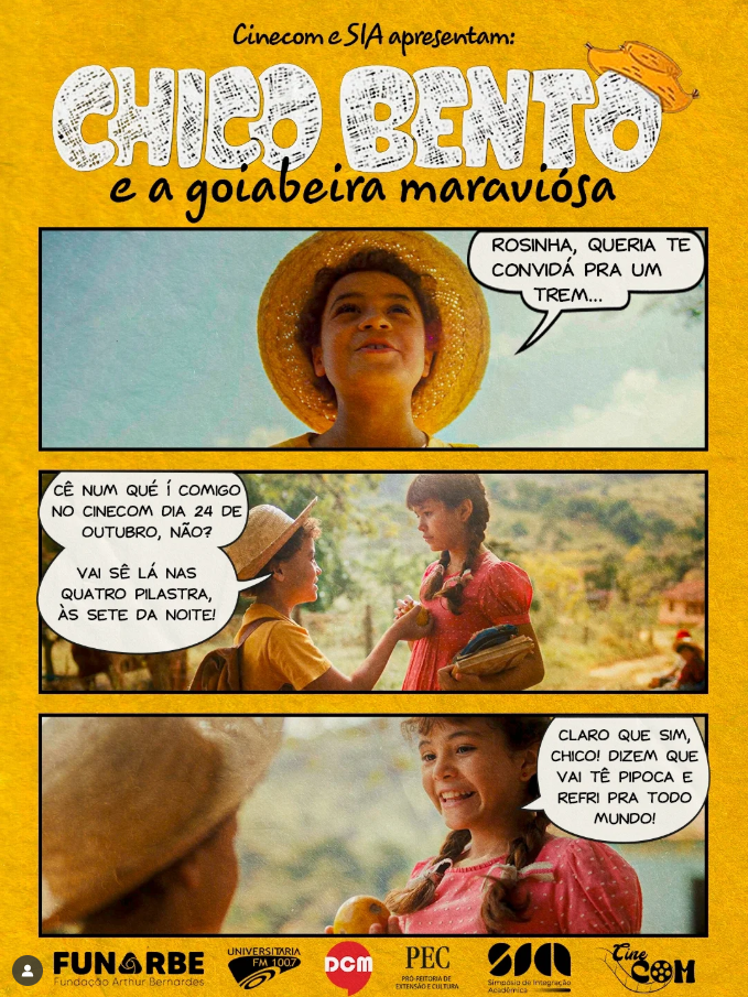 O CineCom terá uma sessão de cinema nesta semana, integrando a programação cultural do Simpósio de Integração Acadêmica. A exibição acontecerá especialmente nesta sexta-feira (24), mas o horário e o local serão os de costume: às 19h, no gramado das Quatro Pilastras. O filme será o lançamento deste ano que ganhou elogios das gerações que acompanham o universo da Turma da Mônica: Chico Bento e a Goiabeira Maraviósa. Como sempre, o evento será aberto ao público e gratuito.