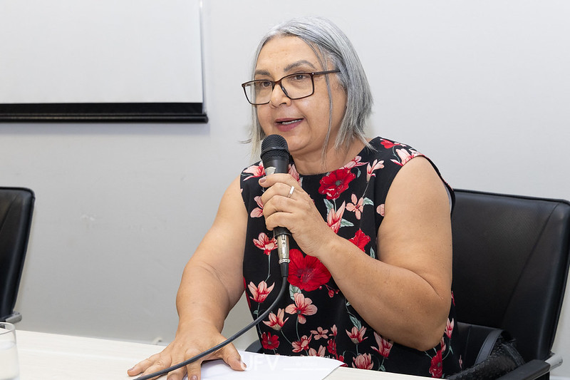 O aniversário é tema de diversos momentos da Semana Acadêmica. E ao falar sobre ele, durante a abertura solene do evento, na terça-feira (4), a chefe do DLA, Aparecida Oliveira (foto ao lado), primeiro agradeceu a todos que fizeram e fazem parte dos 50 anos do curso, dedicando grande parte das suas vidas “a esse projeto de educação”. Para Aparecida, a ocasião é propícia para que a comunidade universitária reflita sobre o futuro, o que deseja para o curso e também para o Departamento. O envolvimento e a parceria entre estudantes e servidores foi destacada: “somente um pensamento coletivo permite avançar, com cursos de graduação e pós-graduação robustos e competitivos na realidade da universidade pública”.