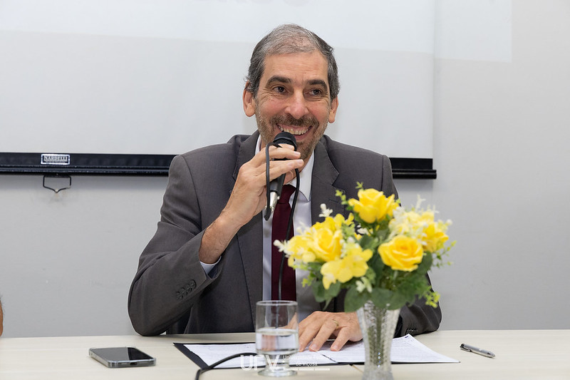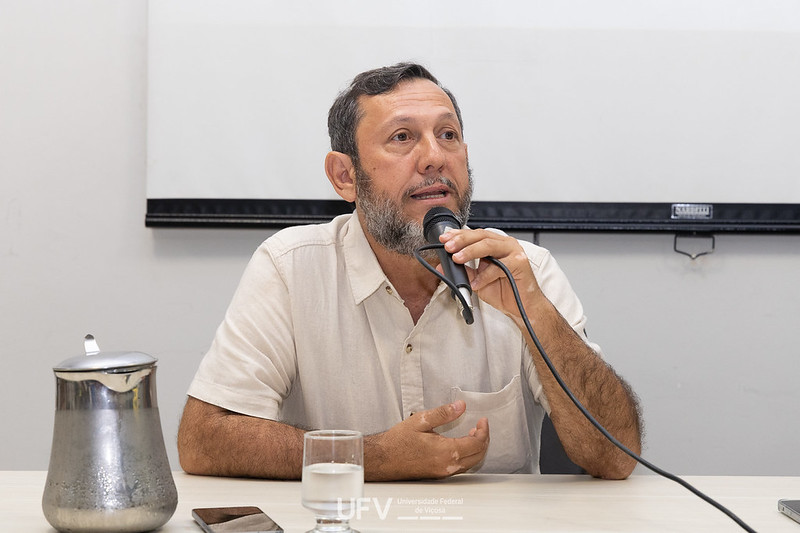 Contextualizando os 50 anos do curso de Letras dentro do centenário da UFV, o reitor Demetrius David da Silva (foto ao lado) ressaltou a importância de reconhecer as trajetórias de sucesso que constituem a Universidade, considerando essencial o comprometimento da comunidade universitária ao longo de tantas décadas e mesmo em meio ao cenário complexo da educação pública. Nesse sentido, o reitor comentou sobre a contribuição dos servidores do curso e do DLA no campo acadêmico-científico e na gestão da instituição e se disse contente em ver tantos estudantes envolvidos com a Semana Acadêmica. “Desejo muito êxito para os próximos anos e que estejamos sempre alinhados à realidade que nos cerca e atendendo às demandas da sociedade”.