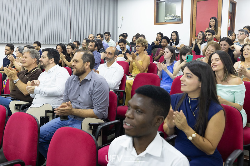 Concordando com o chefe do DET, o reitor Demetrius David da Silva reforçou que um dos diferenciais da UFV é o comprometimento dos seus servidores, funcionários e estudantes, ressaltando a importância do apoio dos familiares — muitos presentes na cerimônia. Demetrius também contextualizou e comemorou a recém-criação da graduação em Ciência de Dados, que, segundo ele, completa e consolida o Departamento no ensino de graduação e pós-graduação, na pesquisa, extensão e na inovação tecnológica. O DET, assim como a Universidade, ele concluiu, “tem uma história belíssima, um presente de excelência e um futuro que, eu não tenho dúvida, será ainda melhor”.