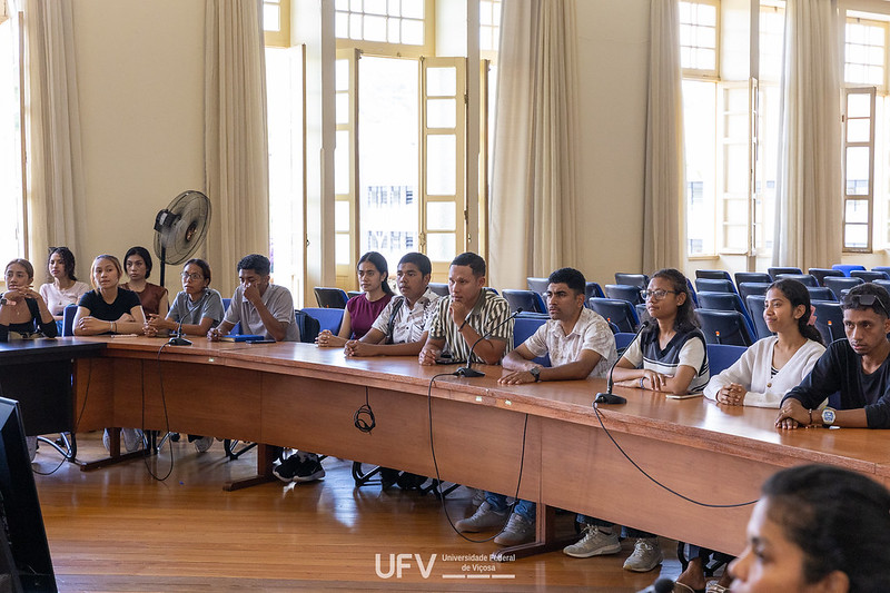 Ainda estiveram presentes representantes das pró-reitorias de Assuntos Comunitários, Ensino, Pesquisa e Pós-Graduação e de Extensão e Cultura, além dos centros de ciências, graduações e pós-graduações envolvidas. Todos foram apresentados por Vladimir e deram boas-vindas aos estudantes, repassando orientações importantes e se colocando à disposição para ajudar no que for preciso. A vice-reitora da UFV, Rejane Nascentes, e a pró-reitoria de Ensino, Cristiane Baquim, falaram um pouco sobre a qualidade e as oportunidades que todos encontrarão na Universidade e destacaram o quanto a experiência será enriquecedora tanto para os estrangeiros quanto para a instituição, que também é muito beneficiada com a troca de conhecimentos.