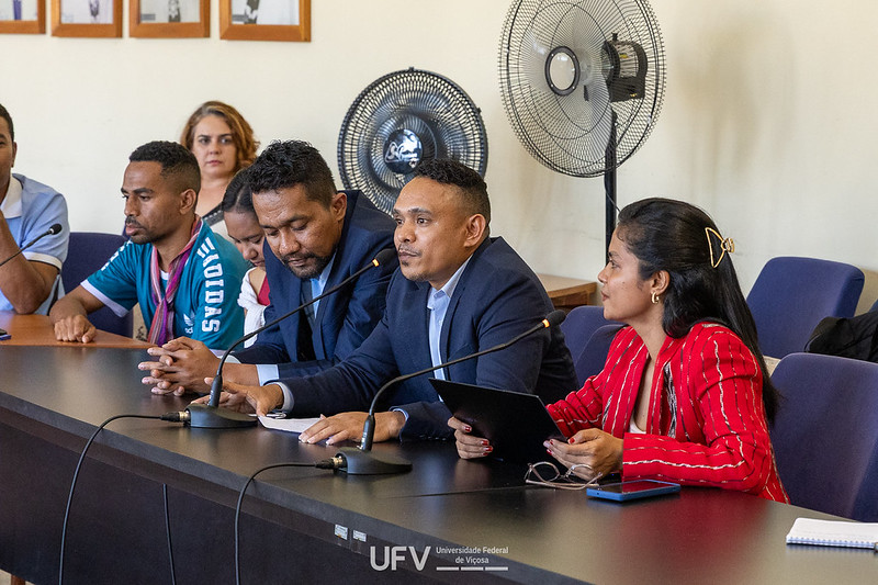 Conforme Anastácia contou, mesmo estando tão longe do seu país, todos de Timor-Leste ali presentes se sentiram "em casa" desde que chegaram ao Brasil. E a beleza da UFV realmente já os impressionou. Os outros dois representantes do FDCH eram Ezequiel Moniz e Lorena Sarmento, técnicos da Unidade de Bolsas de Estudos.