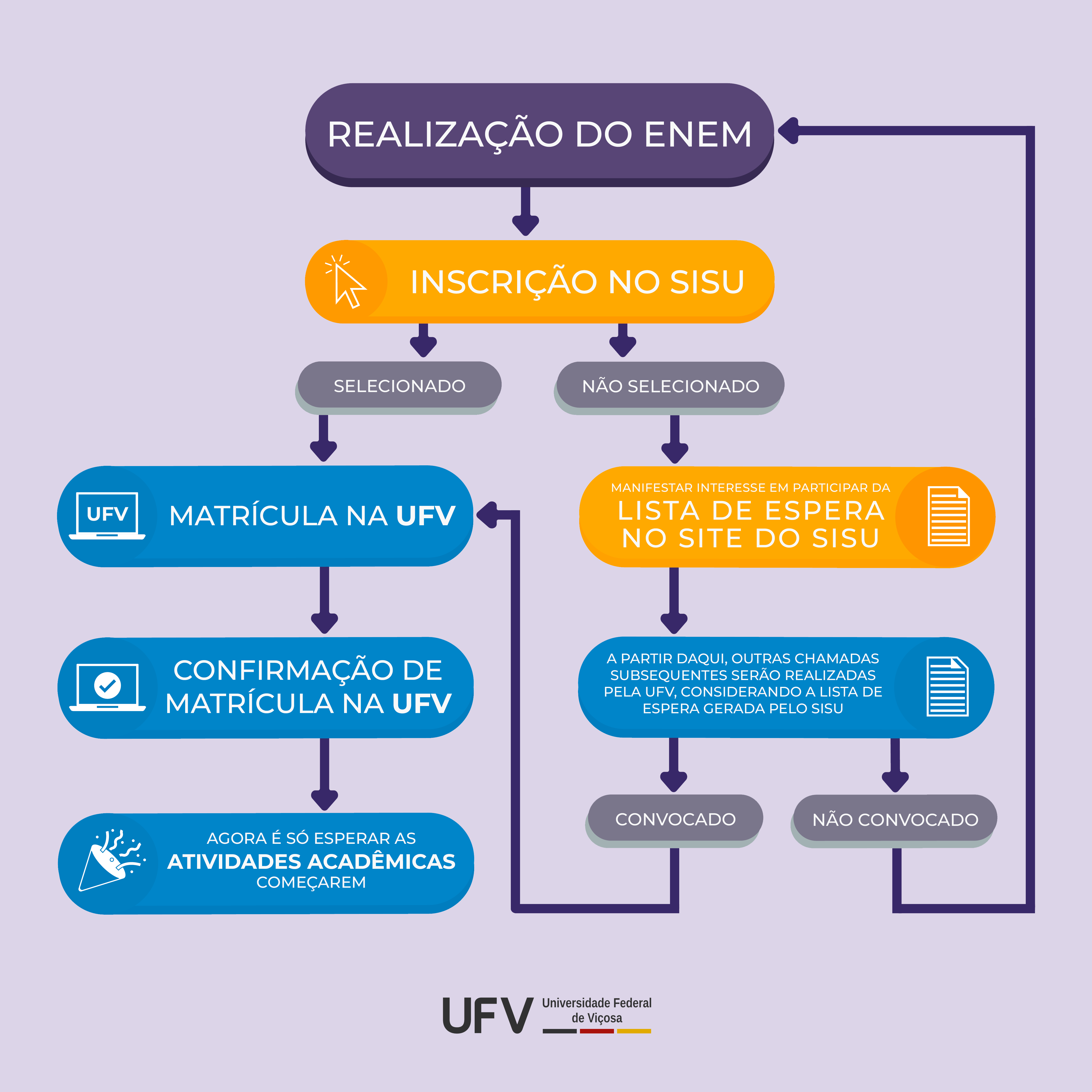 As próximas chamadas serão realizadas a partir dessa lista de espera e disponibilizadas exclusivamente no site de processos seletivos da UFV. O cronograma de divulgação de chamadas e de matrícula também está neste site.