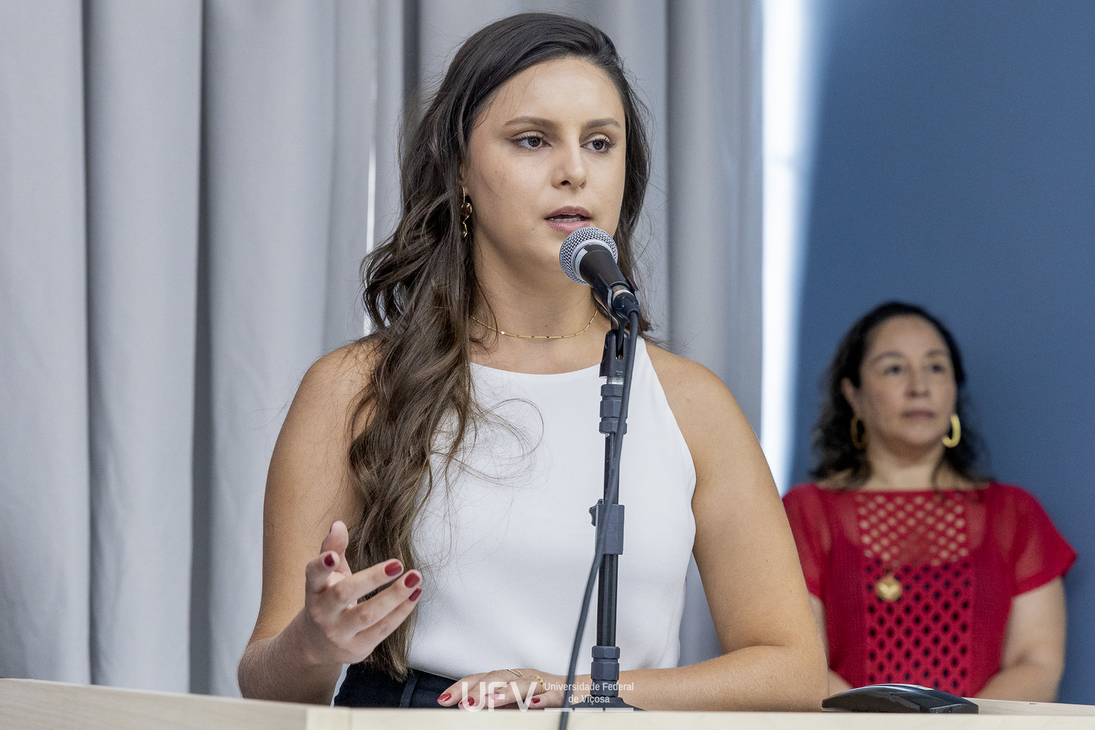 Em nome do grupo, a formanda Samara Aparecida Vieira (foto abaixo), da Engenharia Florestal, agradeceu a homenagem e revelou à plateia de convidados o significado do reconhecimento obtido pelos centros: “é emocionante porque não fala só de notas ou desempenho. Fala de tudo o que vivemos até chegar aqui; de pessoas comuns, com sonhos e esperanças, mas também com medos e inseguranças”.