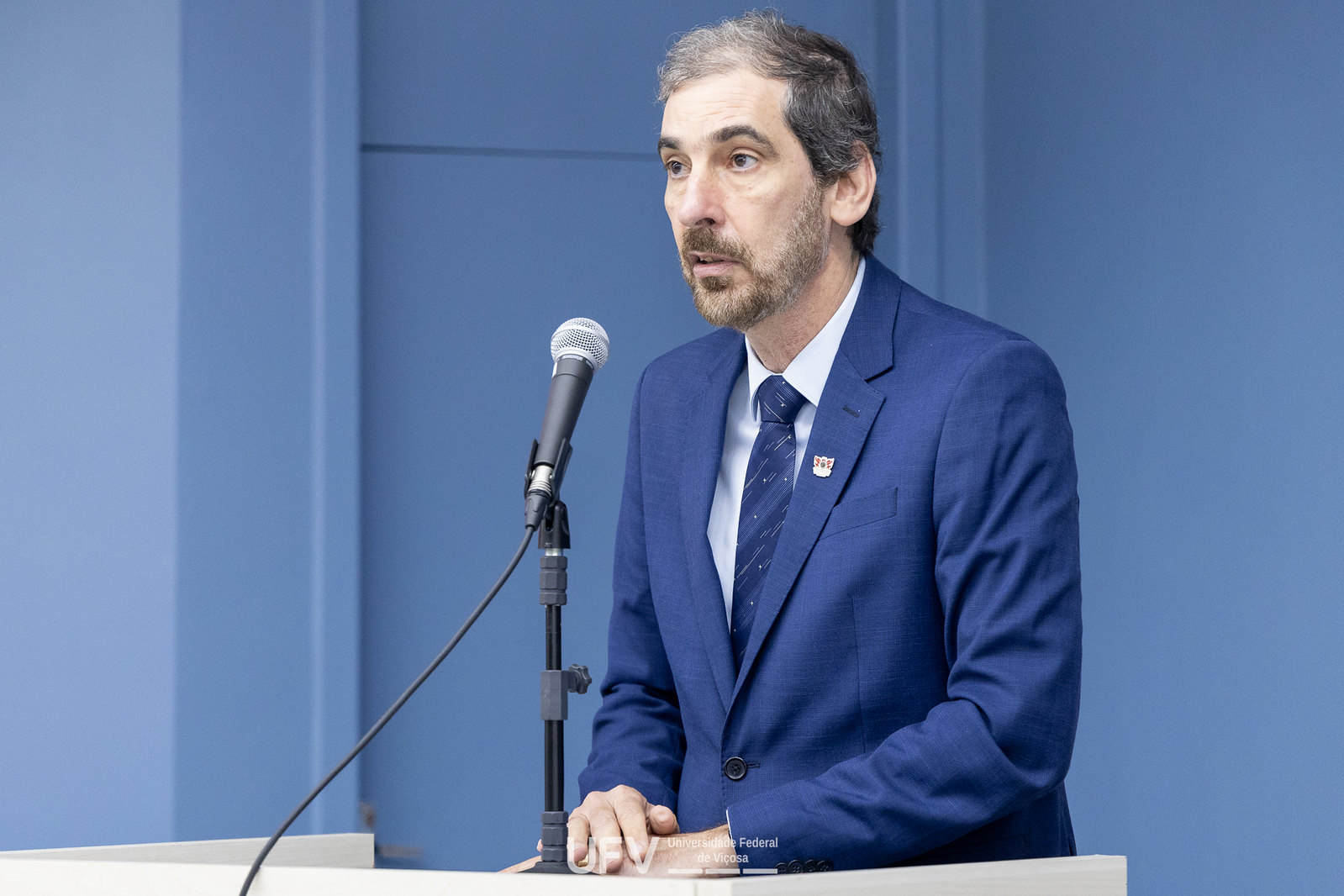 O reitor Demetrius David da Silva (foto abaixo) também esteve presente na cerimônia, onde deixou registrado os cumprimentos aos homenageados, “pelo esforço e dedicação”, e aos pais e mães. A esses, o reitor contou um pouco sobre a história da Universidade que, em agosto, completa 100 anos, e citou exemplos para mostrar que, durante este período, a UFV cresceu mantendo a sua marca de qualidade. Dentre outros aspectos, ressaltou as notas máximas obtidas pela instituição em todos os critérios estabelecidos pelo Ministério da Educação; a excelente avaliação de cursos; o empenho e a dedicação do corpo social da instituição, e o cuidado da comunidade com o campus.