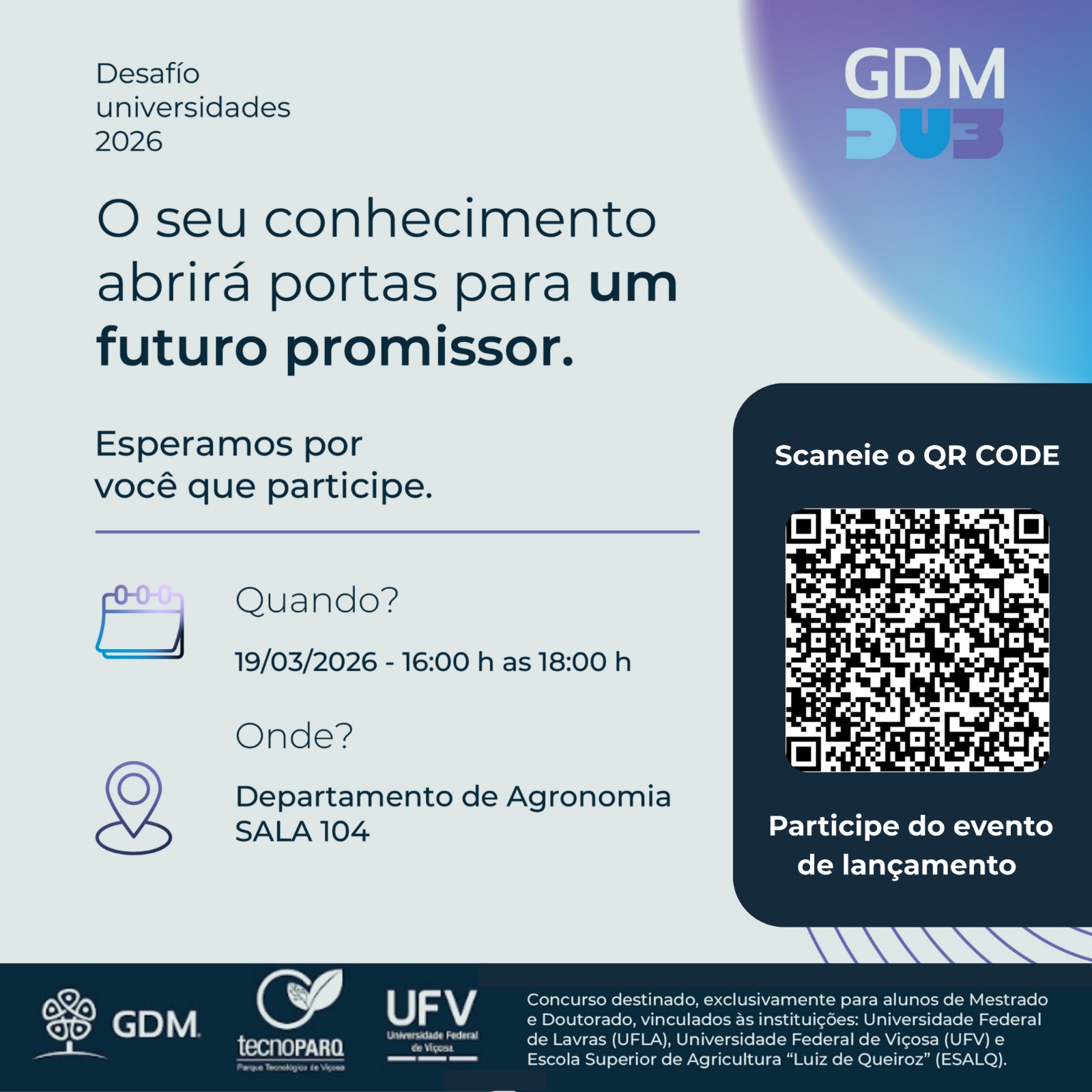 Todas as informações sobre o Desafio GDM Universidades 2026 podem ser conferidas em: desafiouniversidades.gdmseeds.com.